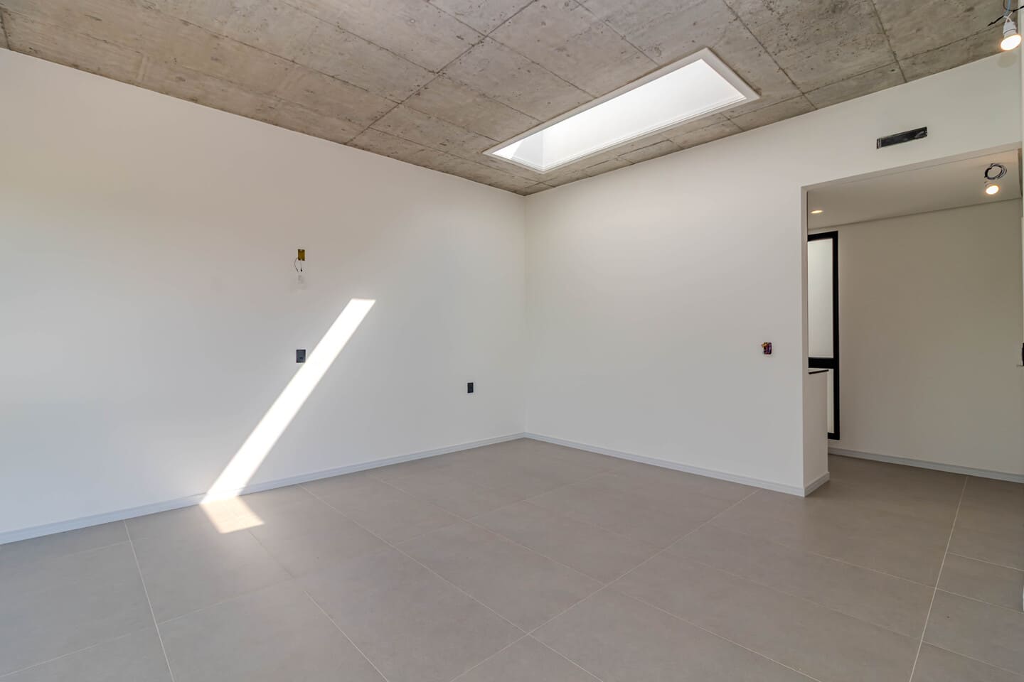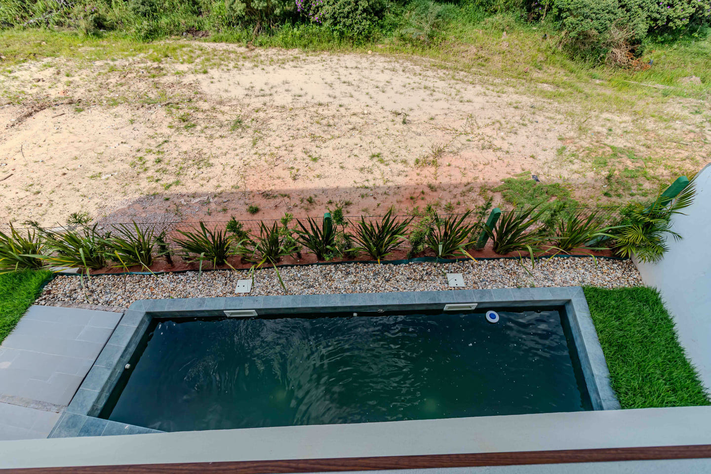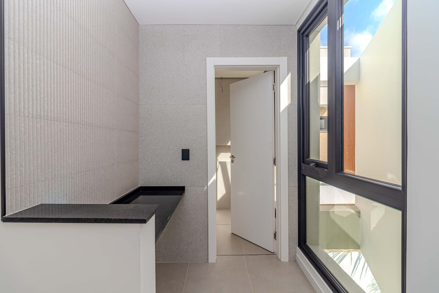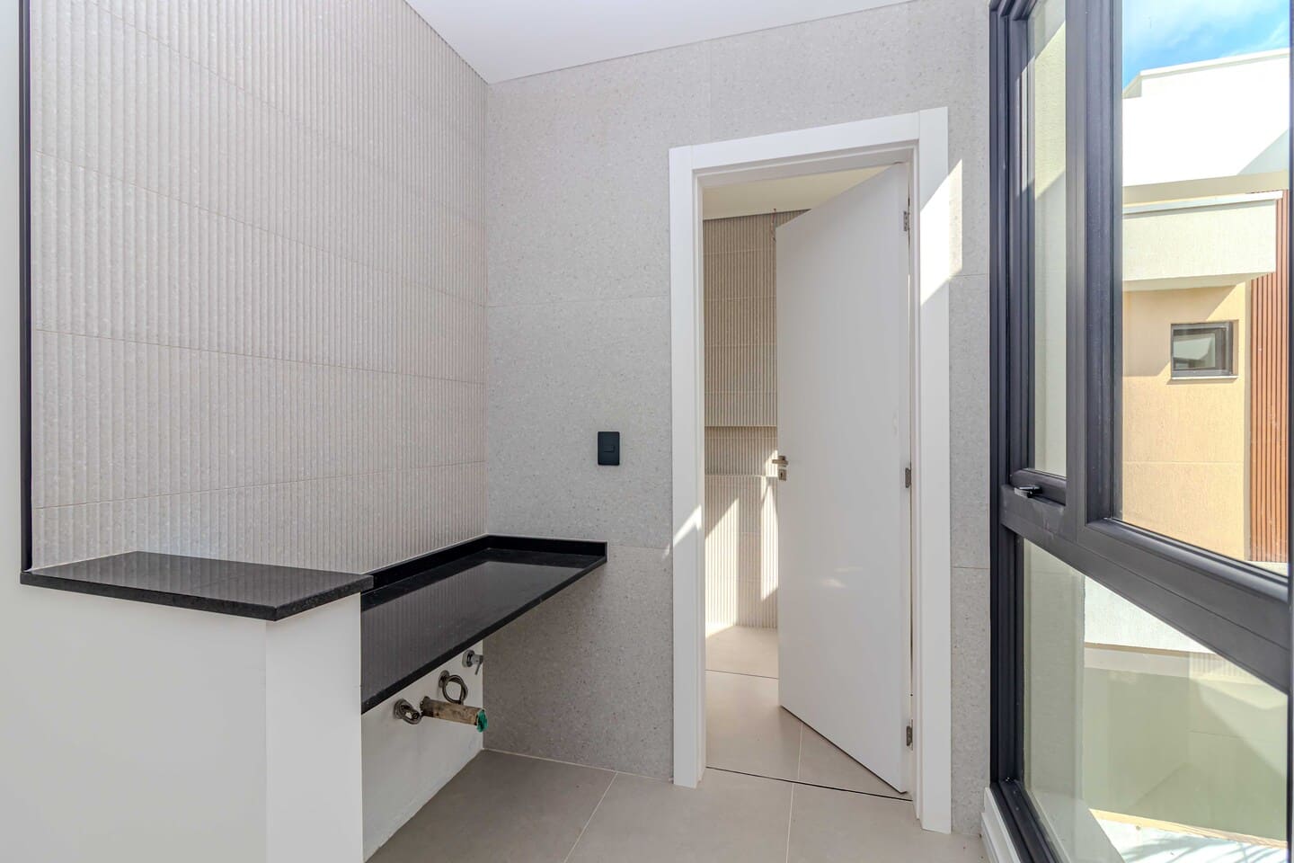 Implantada em lote de 369,97 m², a residência totaliza 350,29 m² de área construída. O térreo integra estar, jantar e cozinha com planos d’água e jardim interno. O pavimento superior abriga as suítes e áreas íntimas, mantendo fluidez e privacidade.