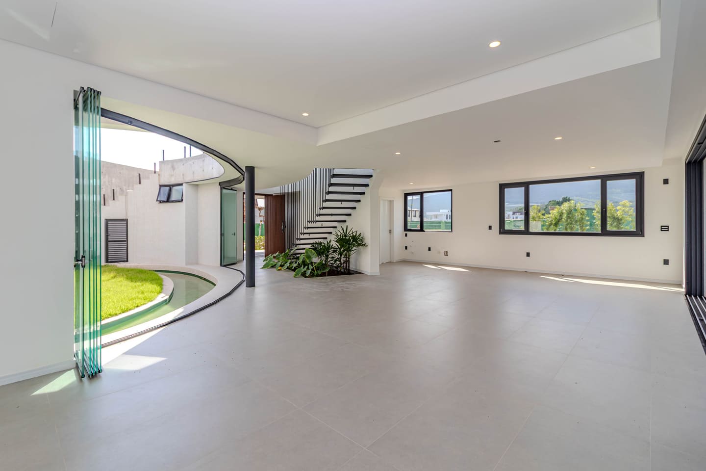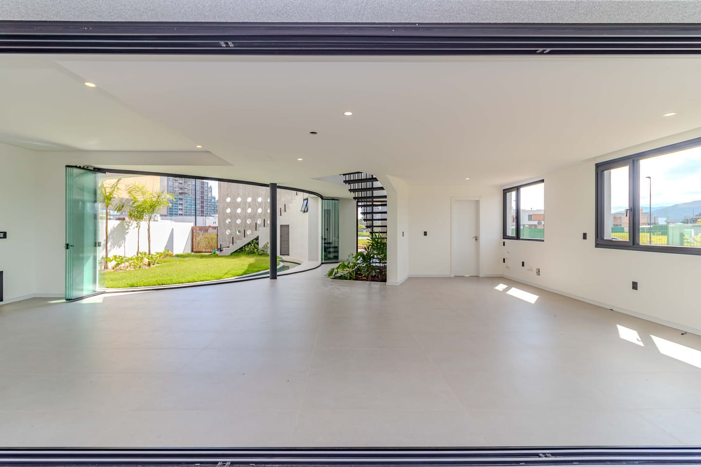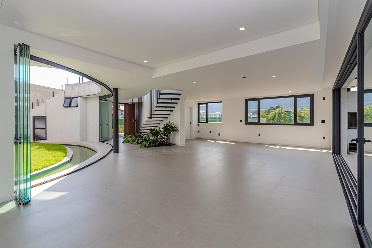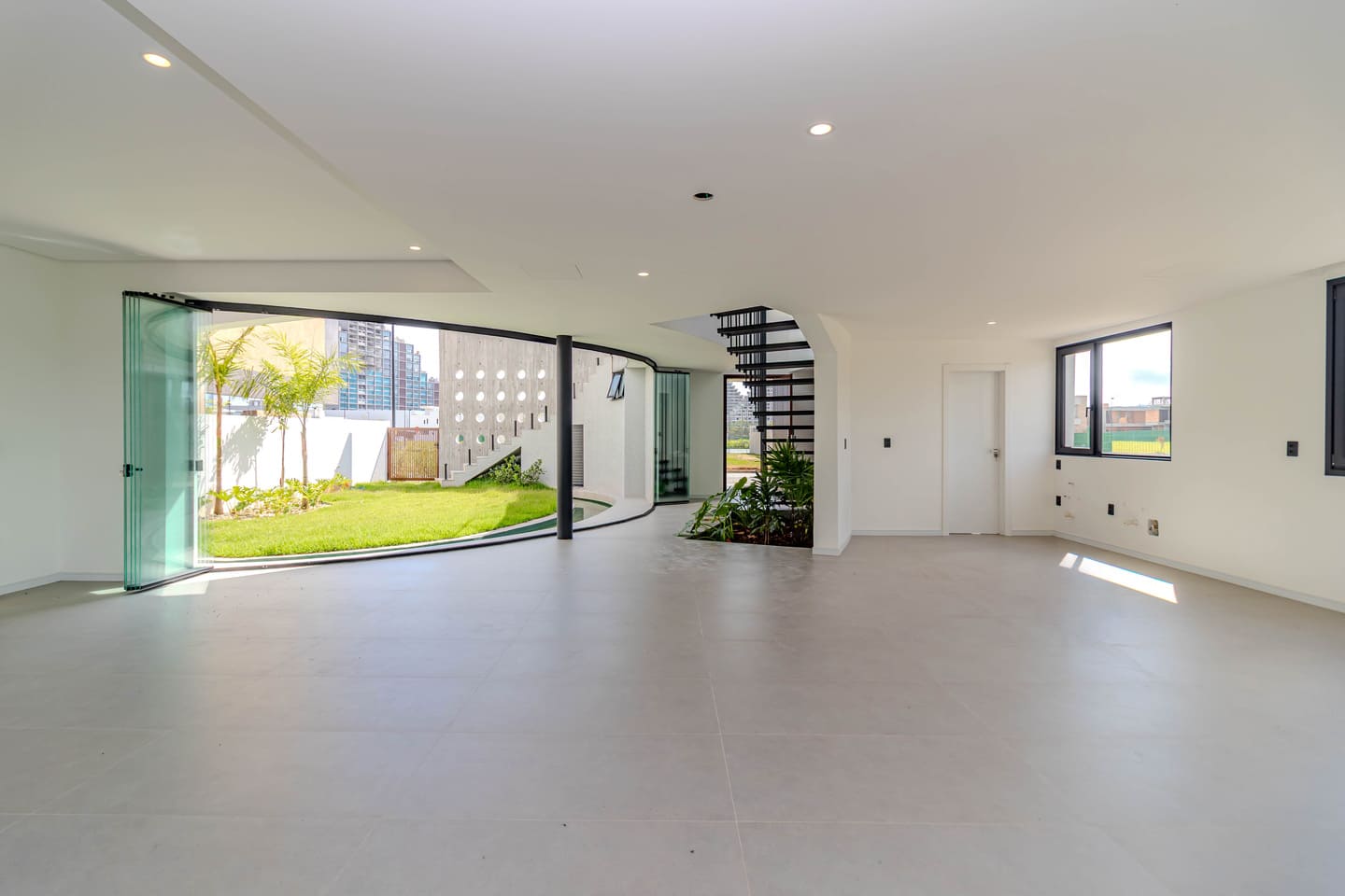 A Casa Möbius nasce da lógica da fita de Möbius: continuidade espacial, integração entre interior e exterior e arquitetura como experiência sensorial.